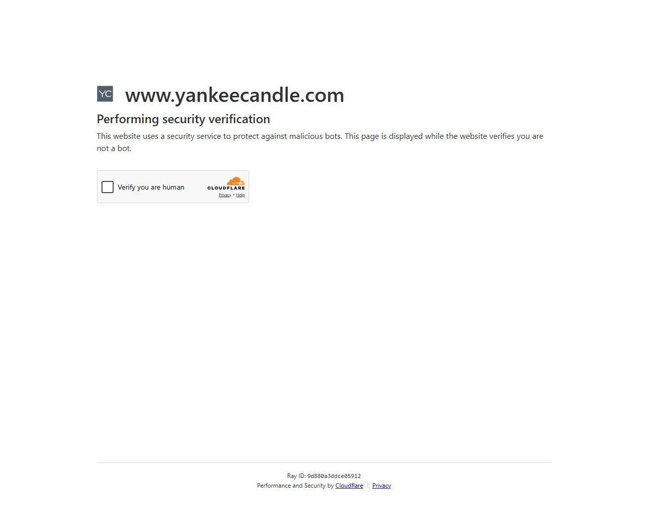 Yankee Candle uses Cloudflare for both CDN delivery and bot management, applying IP reputation scoring and request fingerprinting to filter automated traffic. While the site responds to basic HTTP requests, aggressive scraping patterns quickly trigger rate limiting and challenge pages.